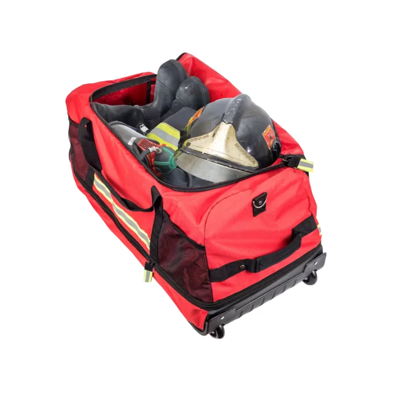 El diseño enrollable de la Elite ROLL&FIGHT’S da como resultado una bolsa de viaje que no sólo es espaciosa, sino que también puede guardarse, lo que reduce significativamente el espacio de almacenamiento necesario cuando no se utiliza. Aunque tiene asas y correas de sujeción extraíbles, también cuenta con ruedas duraderas en la base para ayudar a transportar cargas pesadas. Construida con tejidos resistentes y repelentes al agua, y con bandas y cremalleras de alta visibilidad, esta bolsa es ideal para los equipos de emergencia y de bomberos. Una cremallera de compresión permite ampliar el volumen del compartimento principal cuando sea necesario y los bolsillos laterales de lío facilitan el acceso a efectos personales como guantes o llaves.
