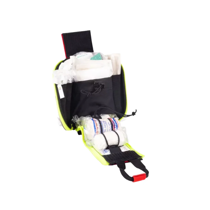 Botiquín compacto e individual para sujetarlo al cinturón con espacio para los cuidados básicos.
