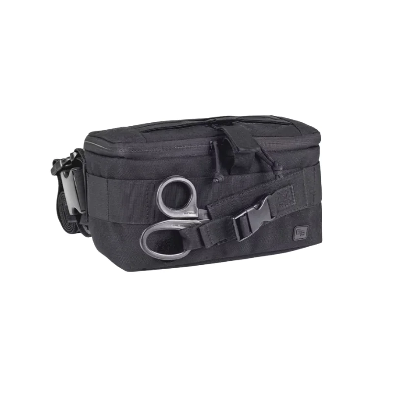 El Elite KIDLE es un botiquín de primeros auxilios muy versátil con correas extraíbles y ajustables que permite fijar la pernera alrededor de la pierna, la cintura o en la parte delantera o lateral de otras mochilas que cuentan con el sistema de fijación universal MOLLE. También se puede llevar simplemente en la mano.