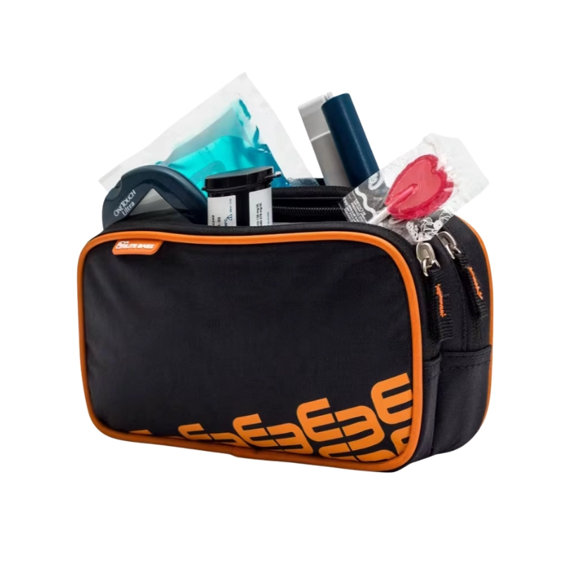 Estuche isotérmico diseñado para llevar todos los elementos esenciales en el tratamiento de la diabetes. Su estructura dividida en dos bolsillos, permite alojar y diferenciar fácilmente tanto los instrumentos de medición (glucómetro, tiras reactivas, lancetas) como los bolígrafos precargados de insulina, debidamente alojados en la sección isotérmica.
