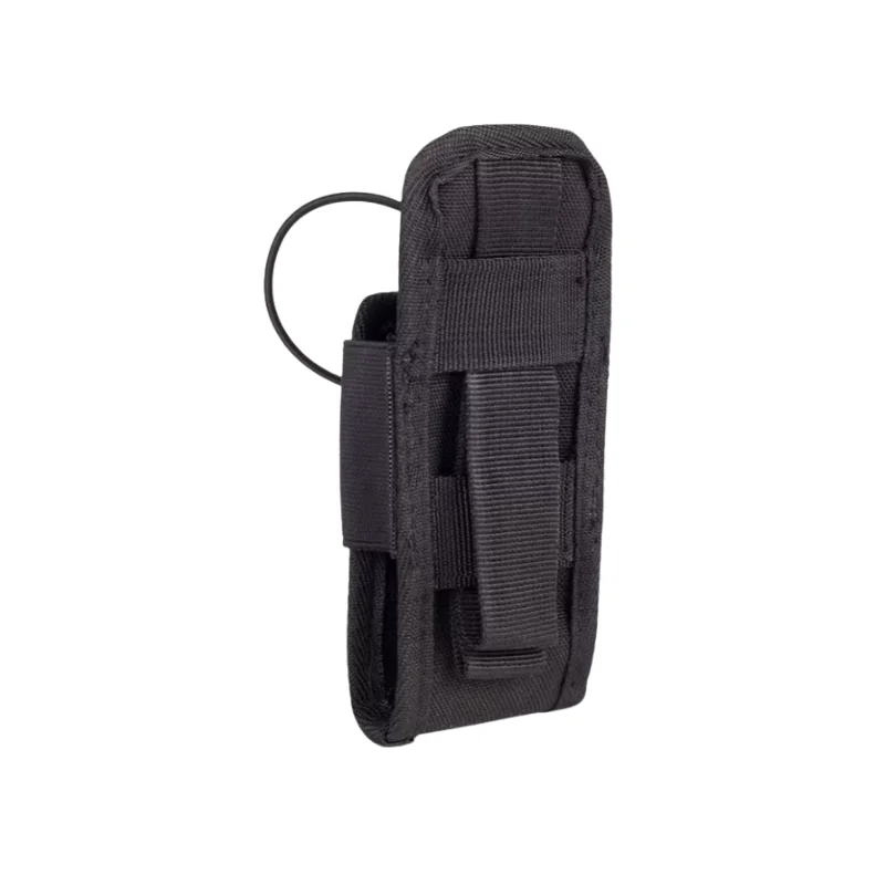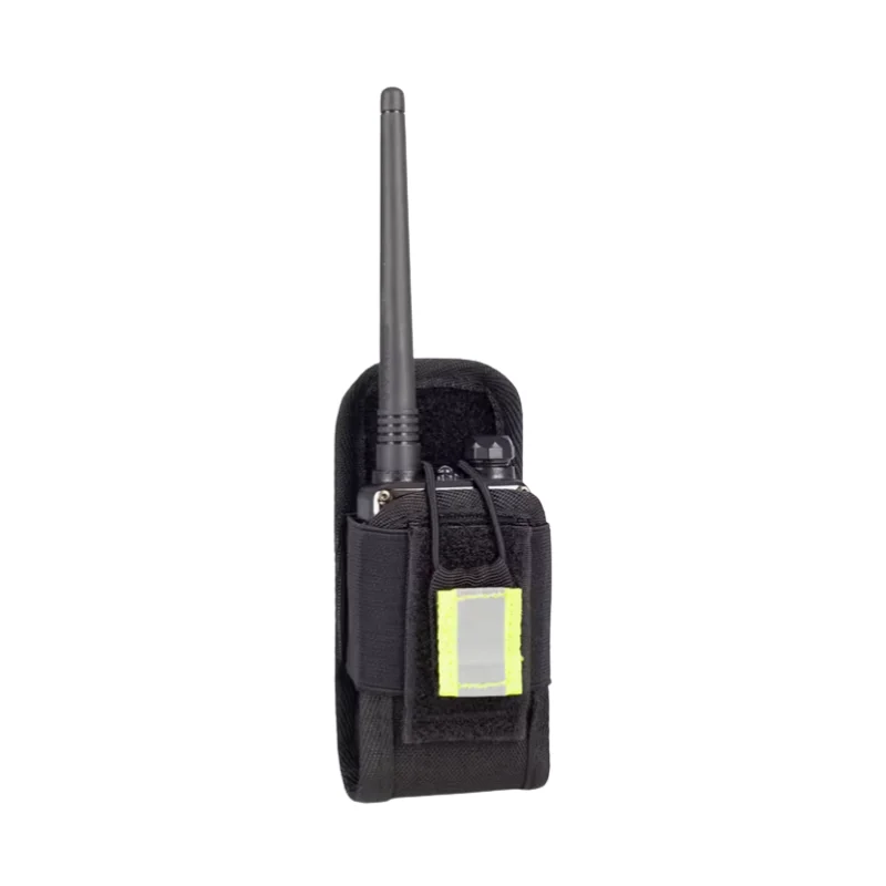 Estuche universal diseñado para el transporte seguro de radios de seguridad. Construida en Poliéster 1000D de alta resistencia. Cuenta con sistema de acople MOLLE para fijación en hombreras, mochilas o chalecos. El compartimento incluye bandas elásticas laterales para un ajuste perfecto a diferentes modelos de radio, asegurando estabilidad. Incluye tirador de alta visibilidad y diseño ergonómico para un acceso rápido y directo al terminal.