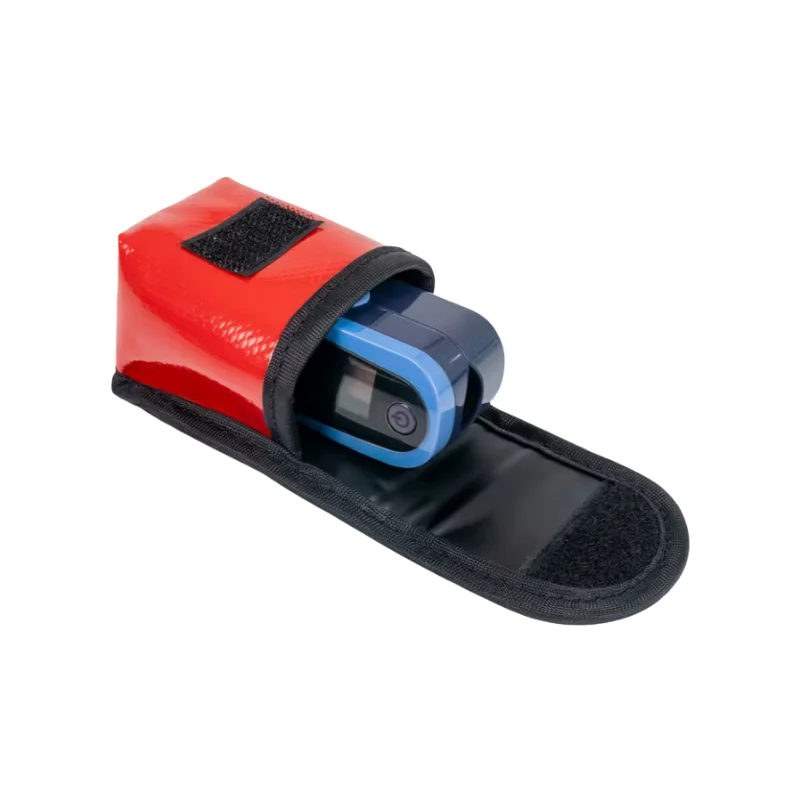 Funda universal diseñada para alojar y transportar todo tipo de pulsioxímetros de dedo, además de prevenir golpes, arañazos y salpicaduras que puedan deteriorar el aparato en sí. Cuenta con una anilla exterior tipo “D” para poder colgarlo con un mosquetón en cualquier mochila o bolsa de emergencias, además de un pasador de cinturón para poder portarlo de forma cómoda y accesible. Su interior está acolchado en todos los lados y cuenta con una banda elástica para poder alojar las pilas de repuesto