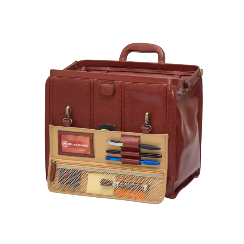 Es el maletín tradicional del médico,  “cabás” que combina una excelente organización interna, con un aspecto clásico en piel que le aporta ese toque de distinción al profesional de hoy en día.