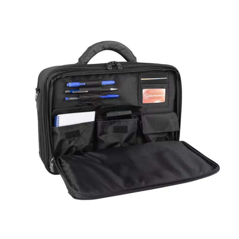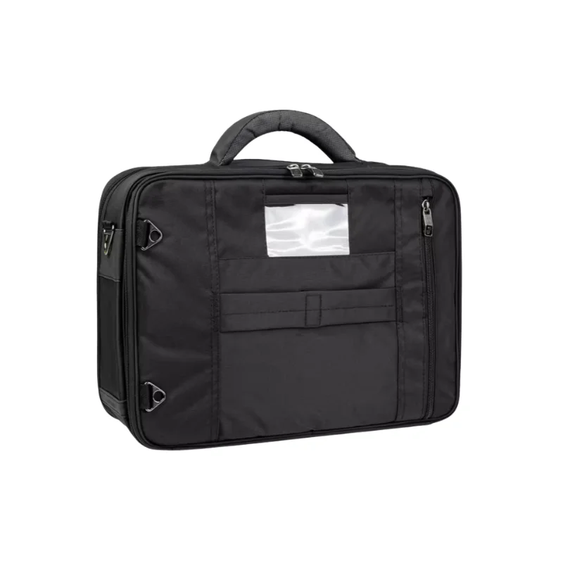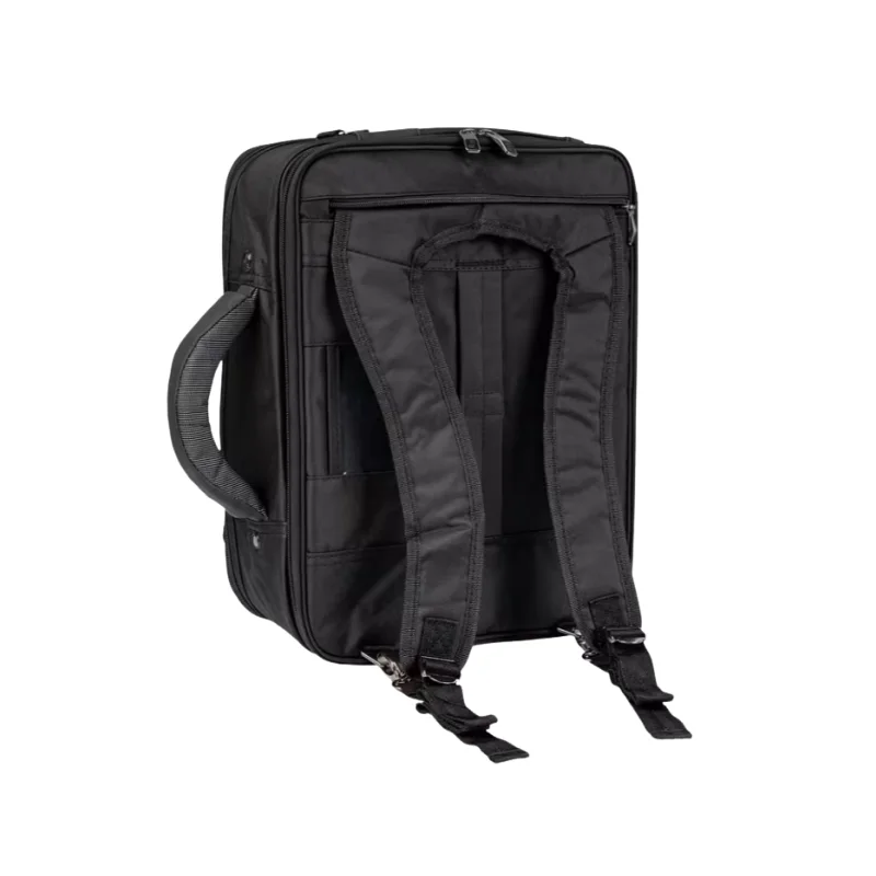 Maletín sanitario de alta capacidad fabricado en Poliéster 300D. Organización avanzada: incluye 4 compartimentos extraíbles con visor transparente, ampulario isotérmico (38 ampollas) y bolsillos dedicados para documentos. Movilidad profesional: transporte versátil mediante asa, tirantes de mochila ocultos o banda para trolley. Seguridad garantizada con cierre para candado. Incluye compartimento acolchado para portátil de hasta 13”.