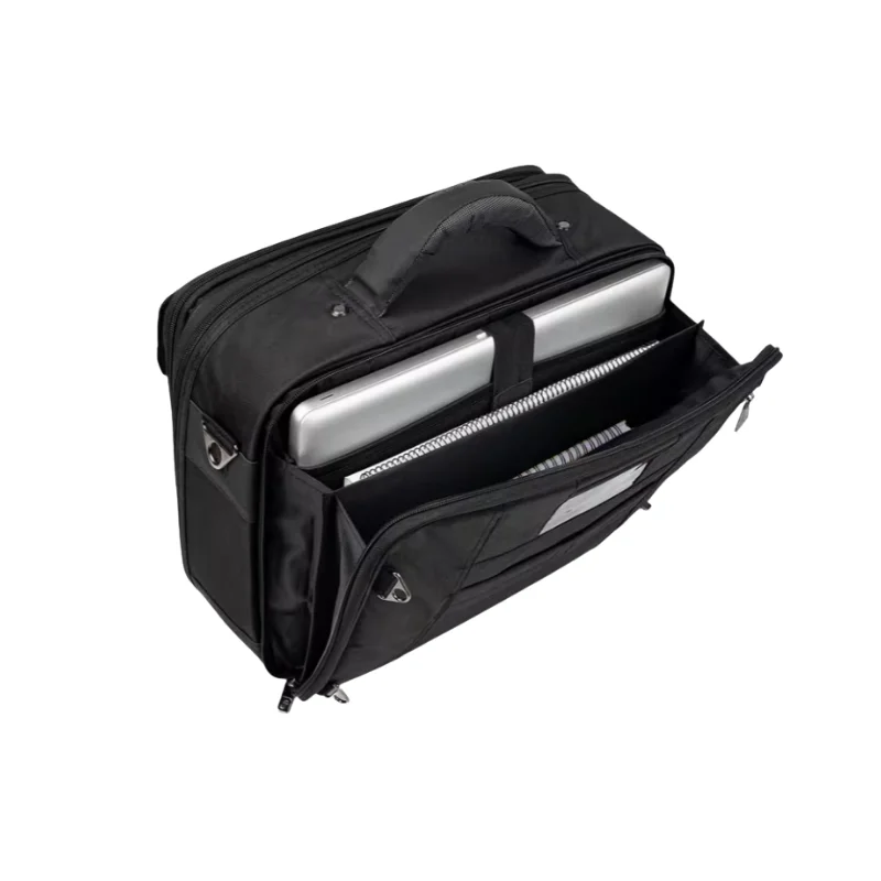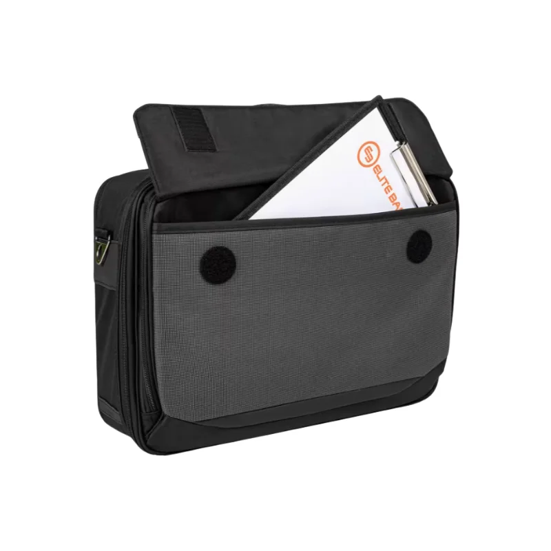 • El bolsillo trasero tipo muelle acolchado permite alojar un ordenador portátil de hasta 13”