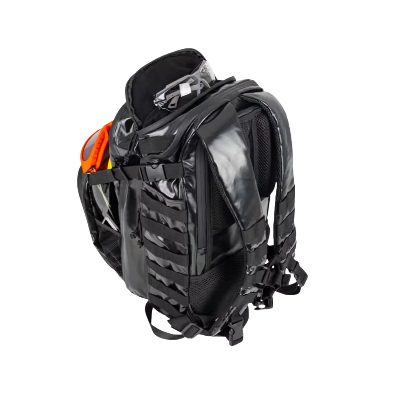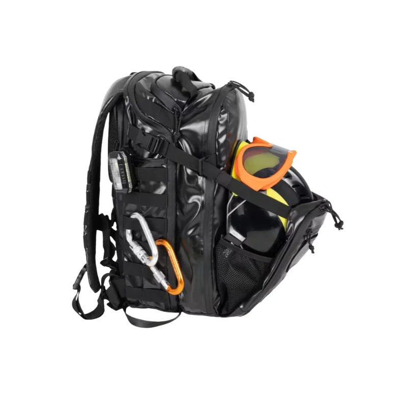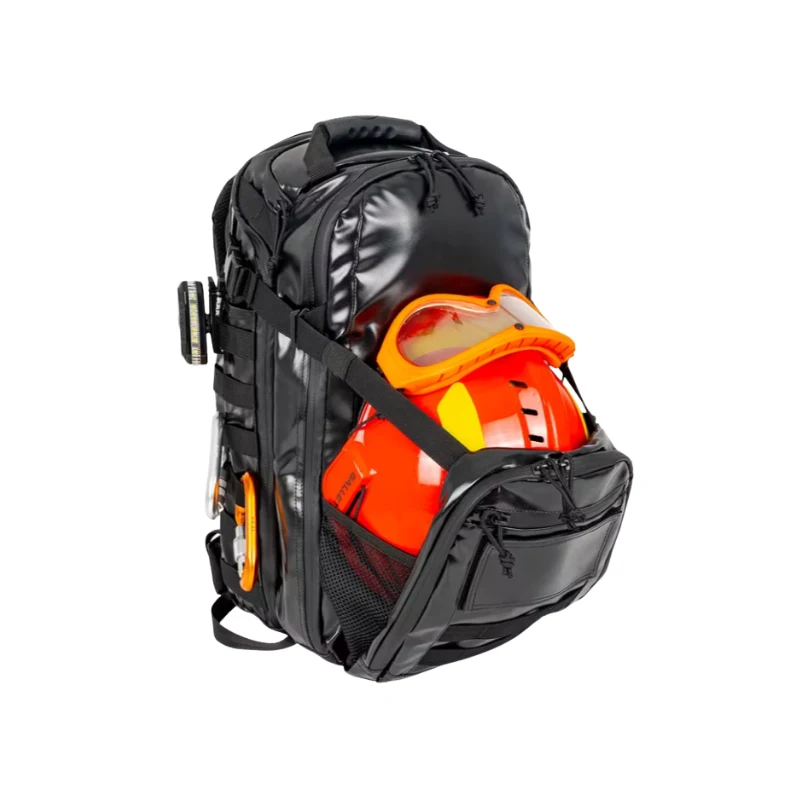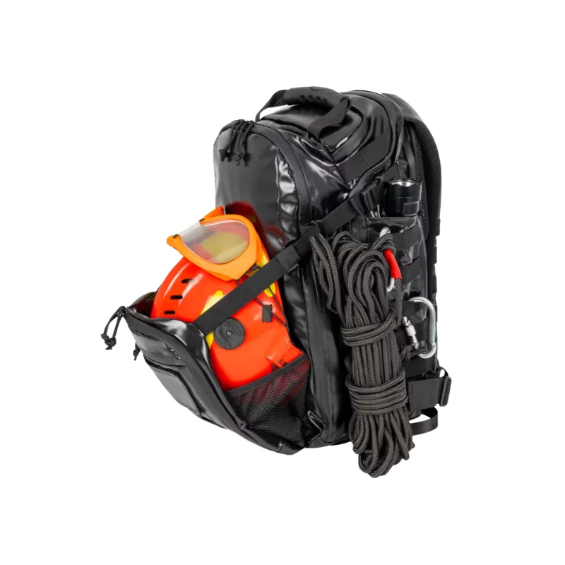 Mochila técnica de alto rendimiento diseñada para el transporte seguro de cascos de rescate y accesorios. Construida en Poliéster 900D Invertido para máxima durabilidad y resistencia al desgaste. Incluye compartimento frontal específico para casco, organización interna/externa para guantes e instrumental, y cintas de ajuste ergonómicas para una distribución equilibrada de la carga (hasta 10kg). Equipado con tiradores flúor para alta visibilidad. La opción más equilibrada entre ligereza (1.4kg) y protección.