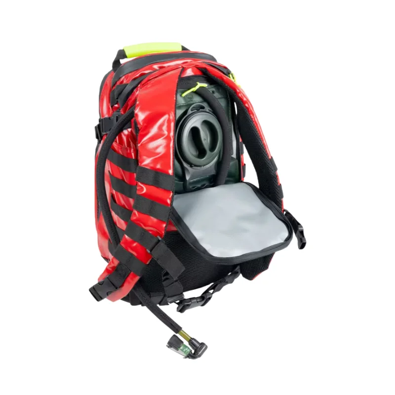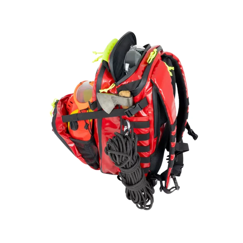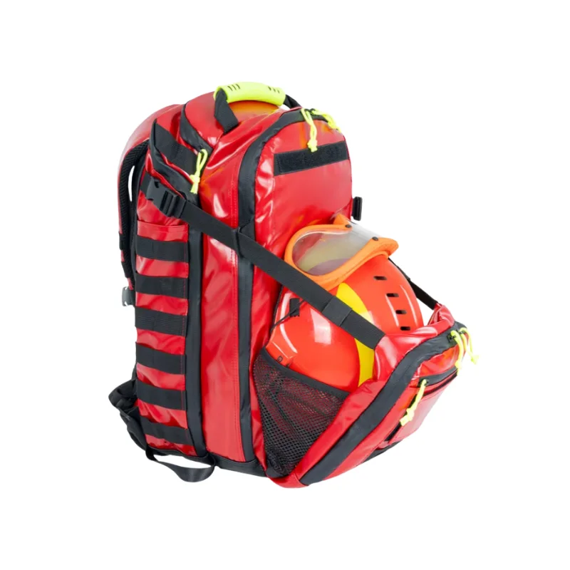 Mochila robusta y funcional diseñada para el transporte de cascos y equipo esencial en situaciones de emergencia. Ideal para bomberos y personal de rescate que necesita acceder rápidamente a sus herramientas.