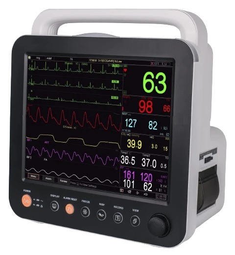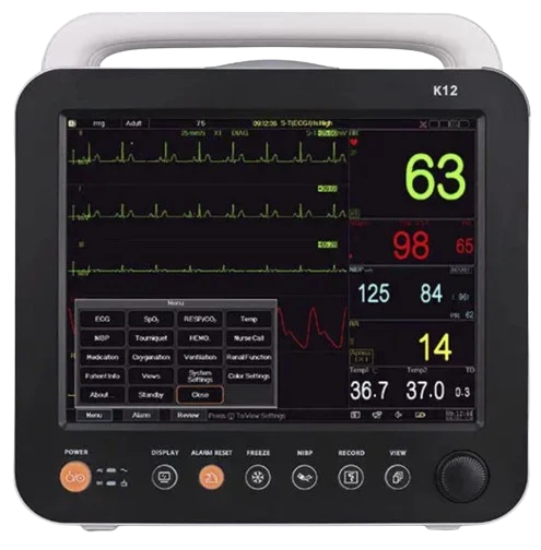 El K12 es un monitor de paciente de última generación, ideal para un monitoreo exhaustivo y preciso de múltiples funciones fisiológicas. Con una pantalla de alta resolución de 12,1 pulgadas, disponible también en versión táctil, este dispositivo ofrece la capacidad de visualizar hasta 13 formas de onda de manera simultánea. Esta característica facilita enormemente el análisis y la toma de decisiones clínicas, convirtiendo al K12 en una herramienta esencial para los profesionales de la salud que buscan precisión y eficiencia en el monitoreo de sus pacientes.