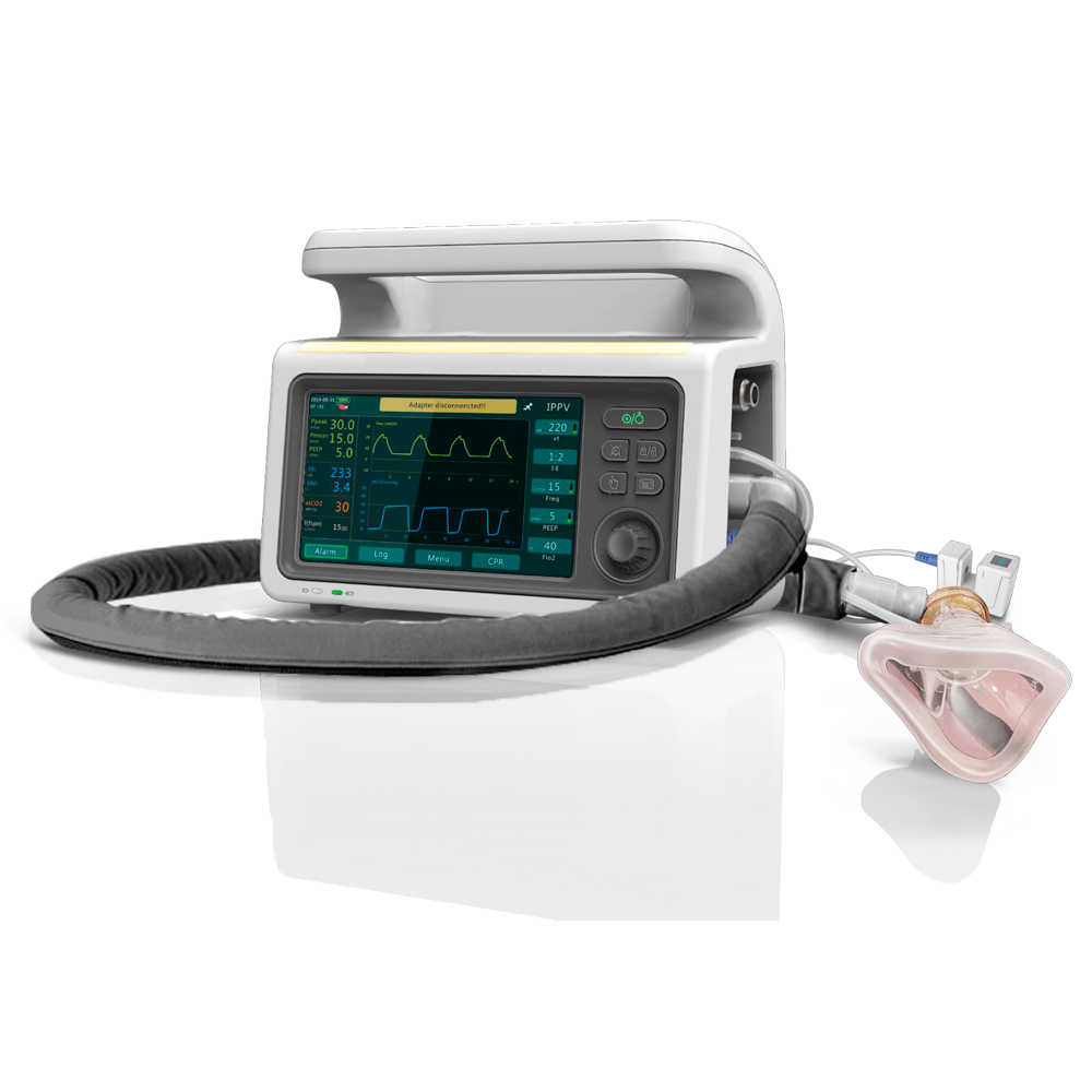 El T5 es un respirador de transporte altamente portátil y eficiente, ideal para emergencias y ambulancias. Destaca por su versatilidad con modos ventilatorios adaptables a distintos tipos de pacientes. La pantalla táctil de 7 pulgadas y la interfaz simple garantizan una rápida y efectiva utilización. Con un diseño intuitivo, es adecuado para personal médico de diversos niveles de experiencia. El T5 ofrece una solución compacta y potente para situaciones críticas de atención médica respiratoria.