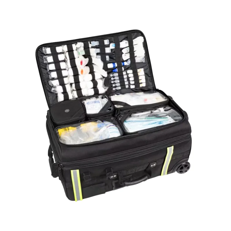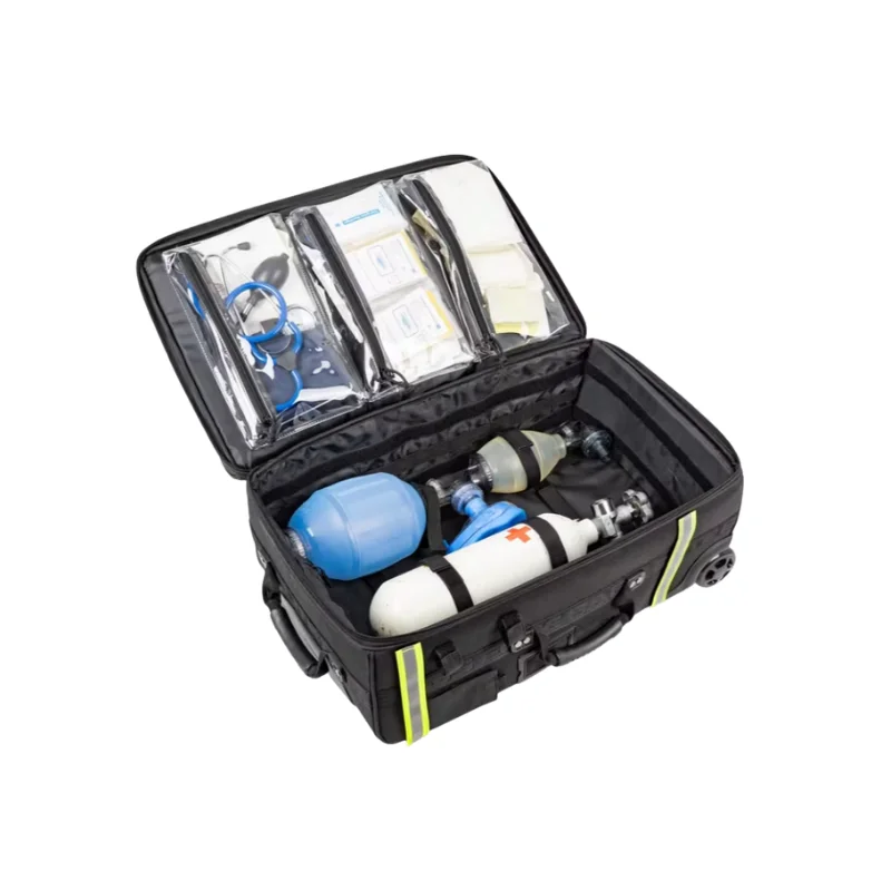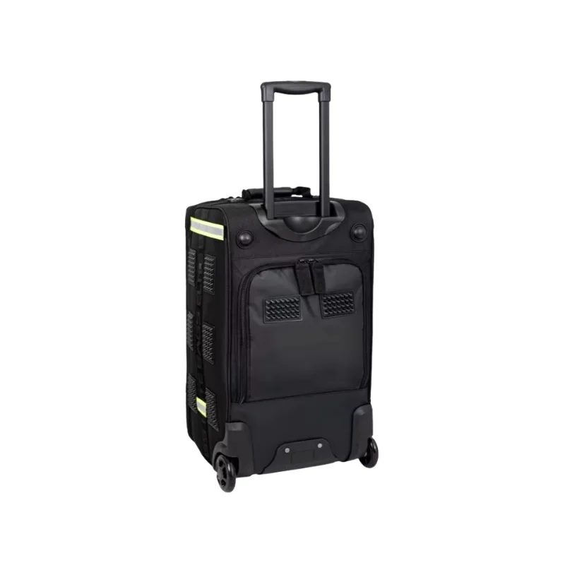 Con un peso máximo de carga recomendado de 25 kg, las ruedas y el asa telescópica aseguran un transporte cómodo y sin esfuerzo, reduciendo significativamente los riesgos asociados con la manipulación manual del equipo de emergencia.