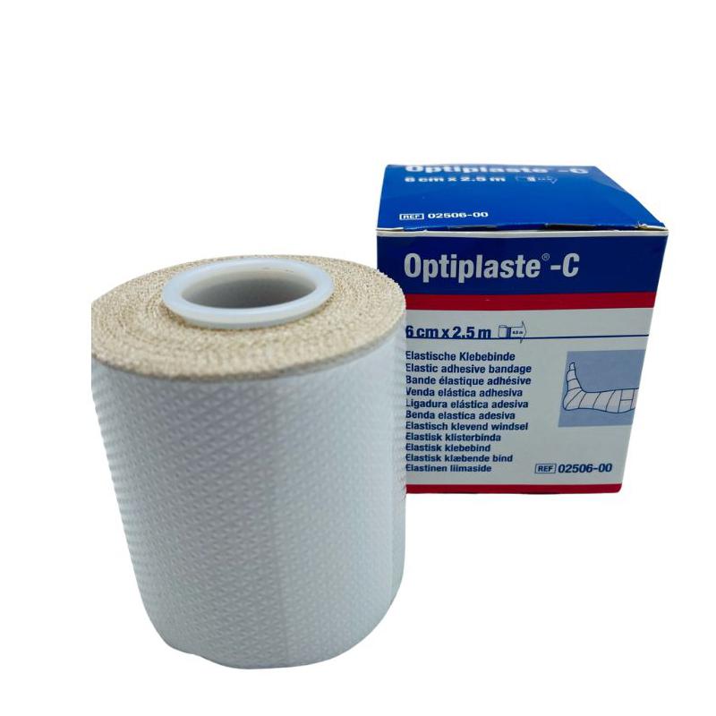 La venda adhesiva Optiplaste-C de 6 cm x 2,5 m es un producto de alta calidad diseñado para ofrecer soporte, compresión y fijación en el tratamiento de lesiones leves y moderadas. Fabricada con algodón 100% y una masa adhesiva de caucho natural y óxido de zinc, esta venda destaca por su excelente adaptabilidad, fijación y comodidad, siendo ideal para uso médico, deportivo y de primeros auxilios.
