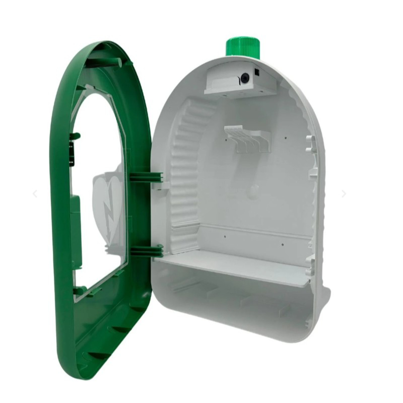 Vitrina diseñada para proteger y almacenar desfibriladores de forma segura y visible. Fabricada en ABS resistente, cuenta con alarma acústica y visual que se activa al abrir la puerta, alertando en caso de emergencia o acceso no autorizado. Su balda ajustable y colgador extraíble permiten adaptarla a la mayoría de desfibriladores del mercado. Fácil de instalar, con señalética normativa y un diseño moderno en color verde para una rápida identificación. Ideal para espacios públicos, empresas y centros educativos que buscan garantizar la accesibilidad y protección del equipo en situaciones críticas.